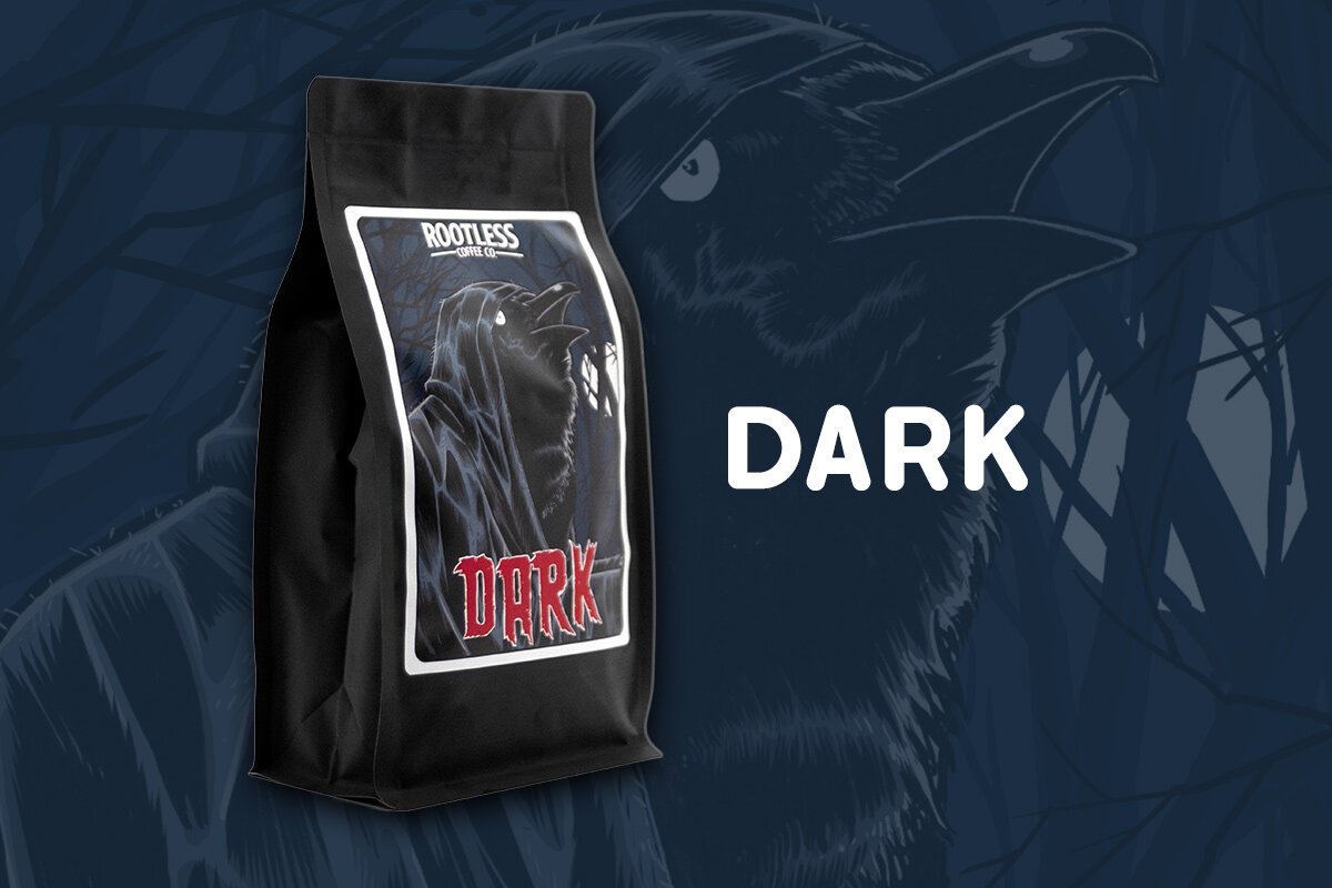 Rootless Coffee currently has four roasts available with corresponding artists: A Damn Fine Cup Of Coffee (Craig Horky); Dark (Kelly Williams); Out There (Matt Emmons); and a single-origin offering called Berry Kiss (Emily Pearson).