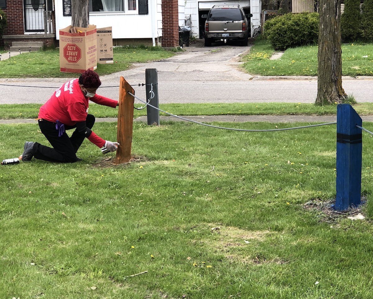 Patrick Hayes | Flintside – Flint Public Art Project partnered with volunteers in Sarvis Park to turn fence posts into crayons on April 24.