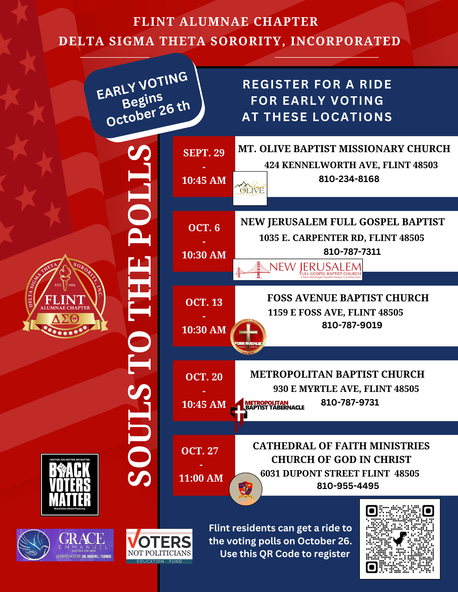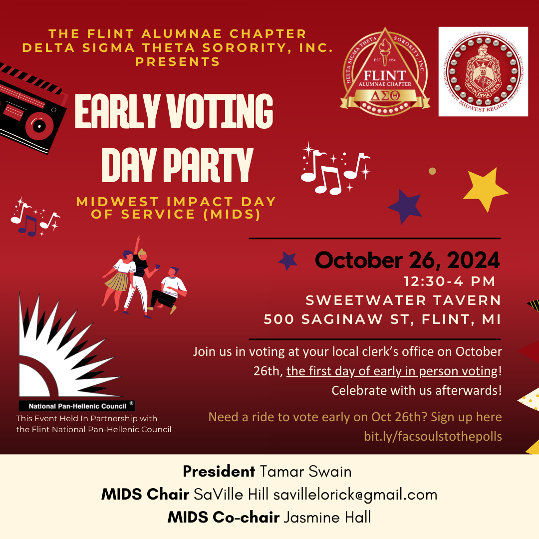 The Flint Alumnae Chapter of Delta Sigma Theta Sorority, Inc. aims to boost community participation ahead of Election Day with the voter engagement events 'Souls to the Polls' and Midwest Impact Day of Service.