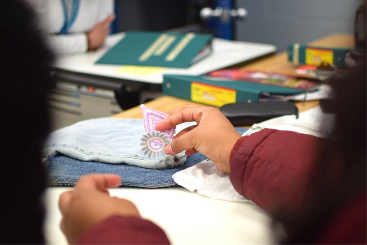 Flintside | Santiago Ochoa – McMillian spends her time at home making small patches to sew on to blue jeans, a skill she’s just now picked up.