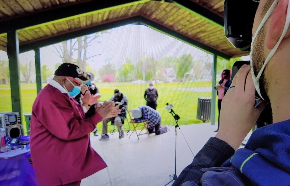 King was among dozens of residents, including local law enforcement, elected officials, and community activists, gathered at Ballenger Park to pray for the City of Flint on May 1.