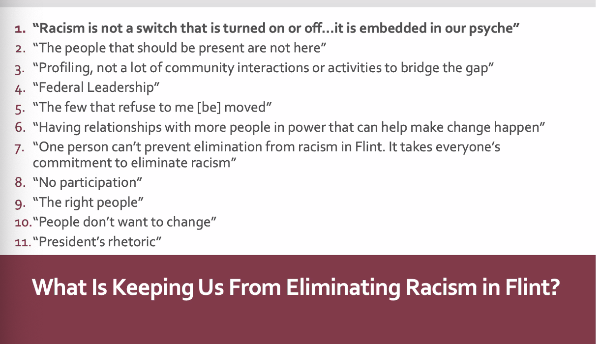 The city of Flint declared racism a public health crisis in the spring, and the Genesee County Board of Commissioners followed suit soon after.