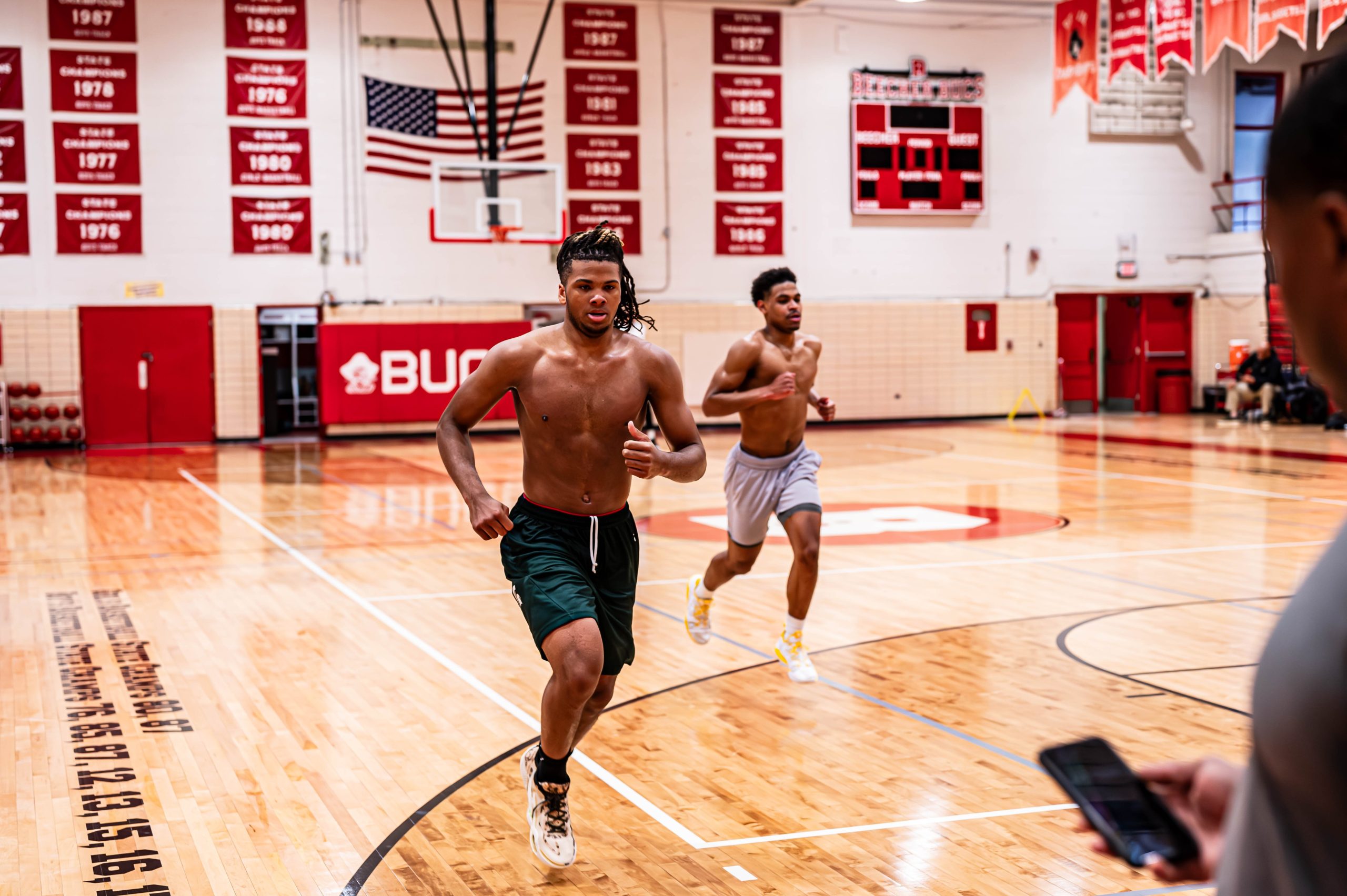 When I caught up with father and son on a Sunday morning, I walked into Moses Lacey’s Field House in Beecher and found the Junior G/F 6-foot-5, 212-pound basketball standout working on shooting and speed drills since 9:00 in the morning with former Flint basketball standouts Greg Burks and K.C. Cavette while both groups were in town.