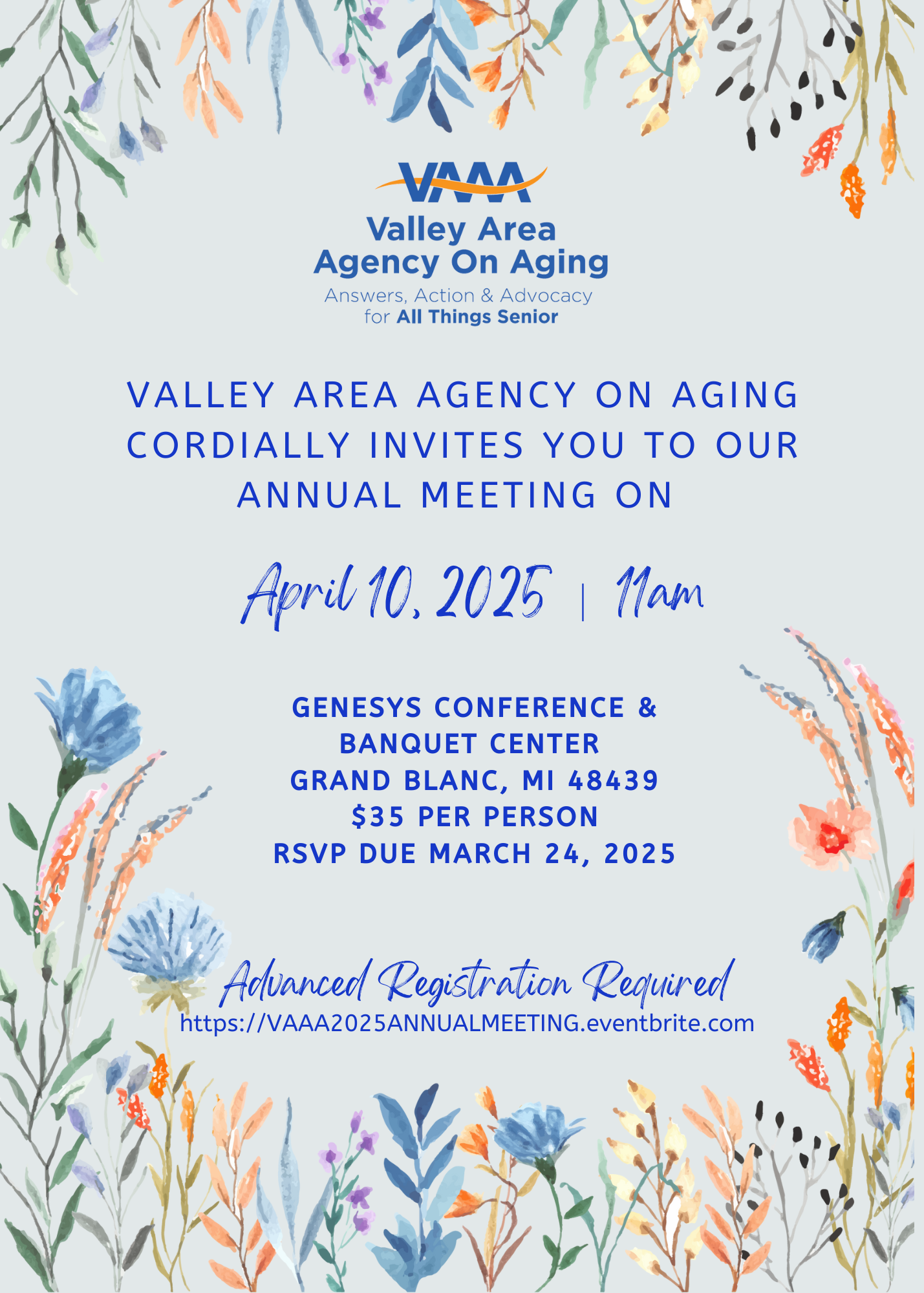 The Valley Area Agency on Aging will host its 2025 Annual Meeting on Thursday, April 10, at the Genesys Banquet and Conference Center in Grand Blanc Township. The event will bring seniors together and acknowledge the contributions of individuals and organizations that serve the senior community.