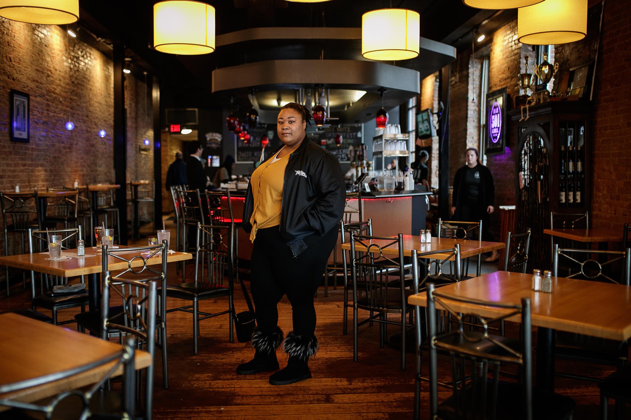 That and the blossoming confidence expresses itself as we move through 501, capturing Tay at the bar and around the tables. It and her roots start on Flint’s southside, where Tay always found solace in music. “I feel music is my way of dealing with everything,” she explains with a pensive expression.