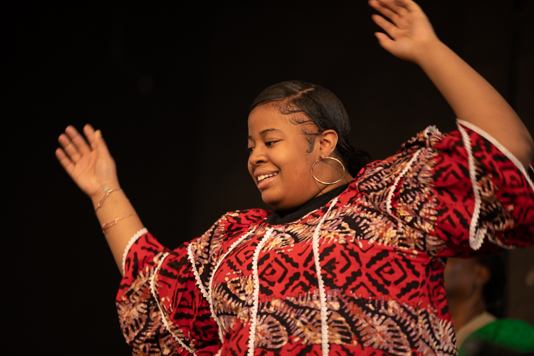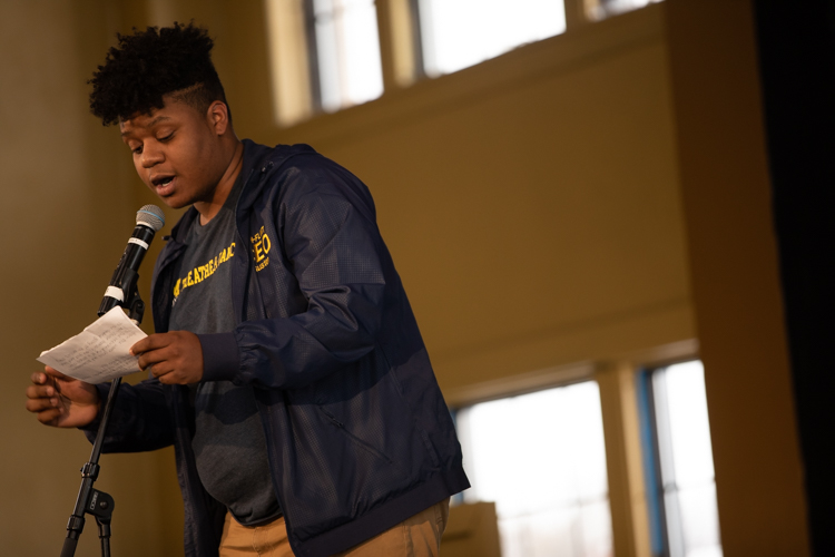 Iyanna Webb, a dual-enrolled student at Genesee Early College and the University of Michigan-Flint who is also a member of Tapology, a tap dancing program in Flint, performed after Ma and Collins were on stage.