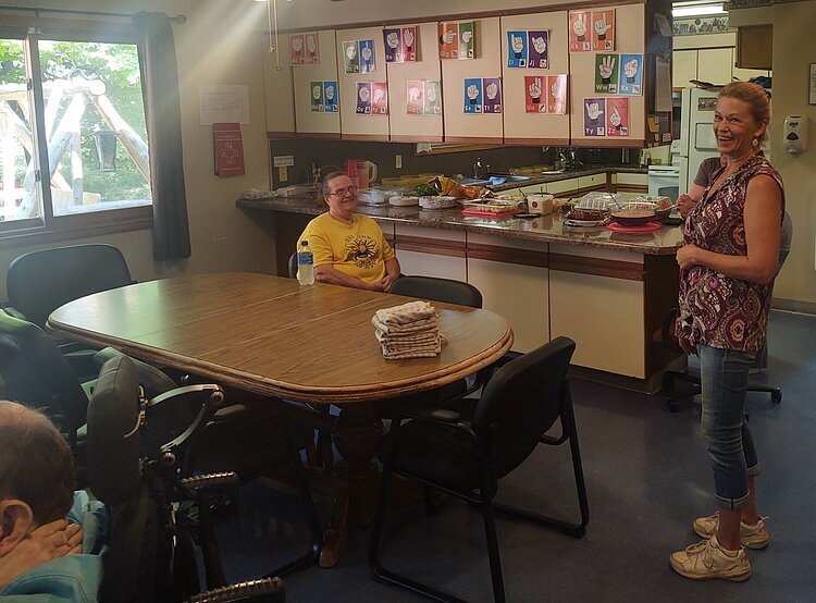 “We are able to sustain people on G-tubes [gastrostomy tubes] who receive their food and medications through the tube,”  Simpson says. “We even have portable blenders so when residents are out in the community, we can prepare their G-tube meals on outings.”