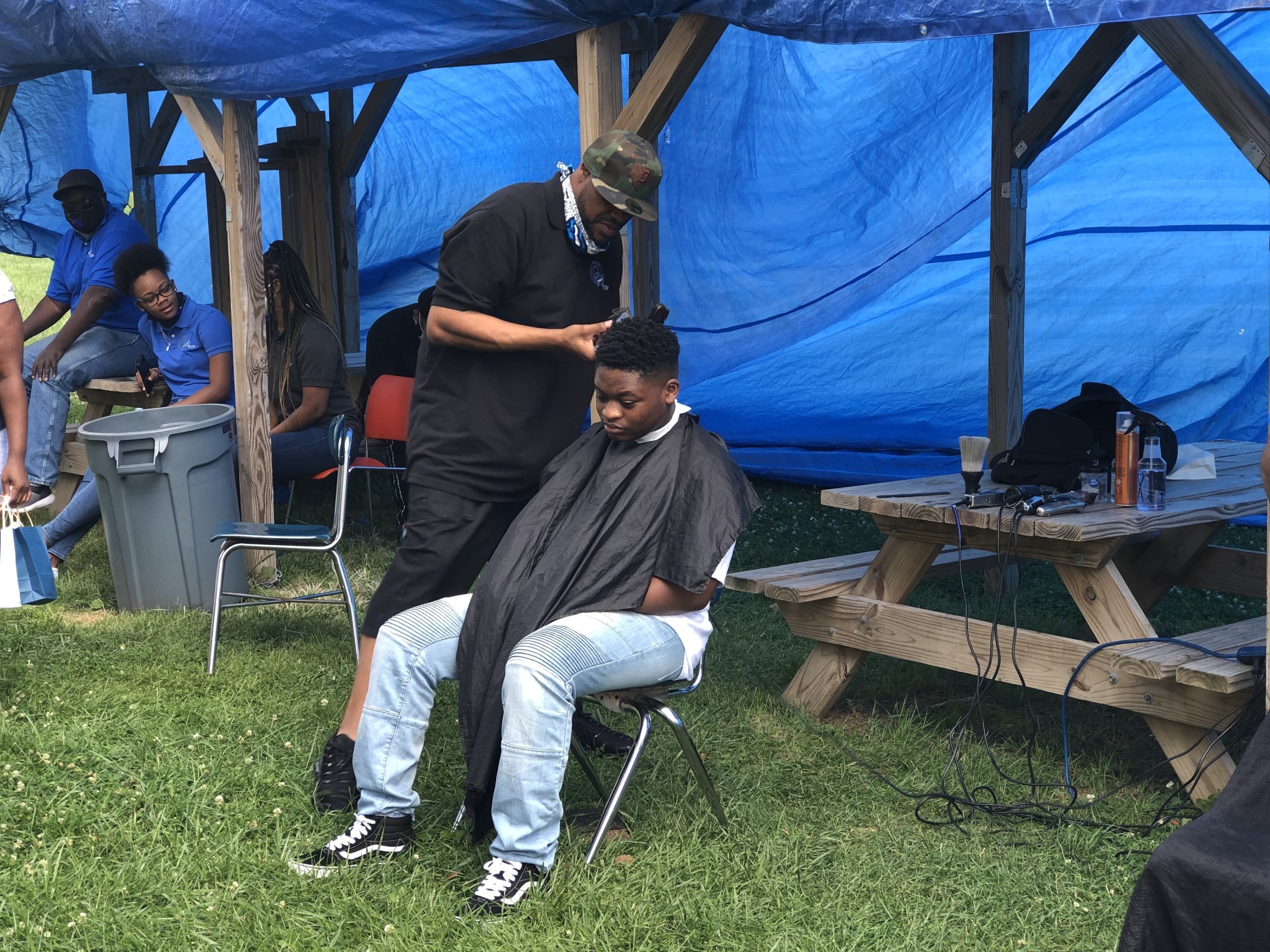 The haircuts were part of a back-to-school event organized at Berston Fieldhouse by Bryant Nolden, Executive Director of the Friends of Berston Fieldhouse, State Rep. Cynthia Neeley, and Flint Mayor Sheldon Neeley. At the event, kids were able to pick up backpacks, school supplies, and Halloween costumes in addition to getting their hair cut.