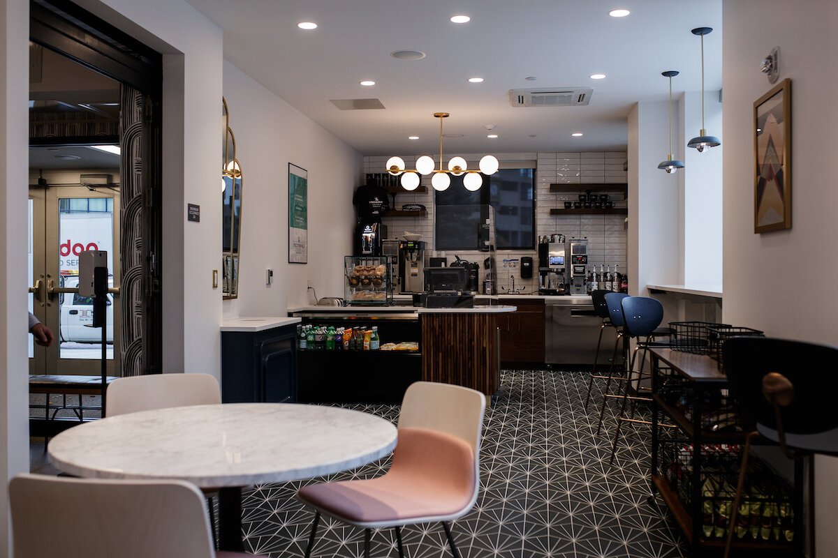 The hotel will create 45 full-time and 15 part-time jobs and provide a convenient space for travelers visiting nearby universities and businesses and features a ground-floor coffee shop called The Federal Coffee House (see the menu), an Italian-American fusion restaurant called Sauce (reserve a table), and a rooftop lounge, Simmer, set to open in the spring of 2021. The coffee shop is open from 8 a.m. to 6 p.m. and offers coffee, pastries, sandwiches, and other items.